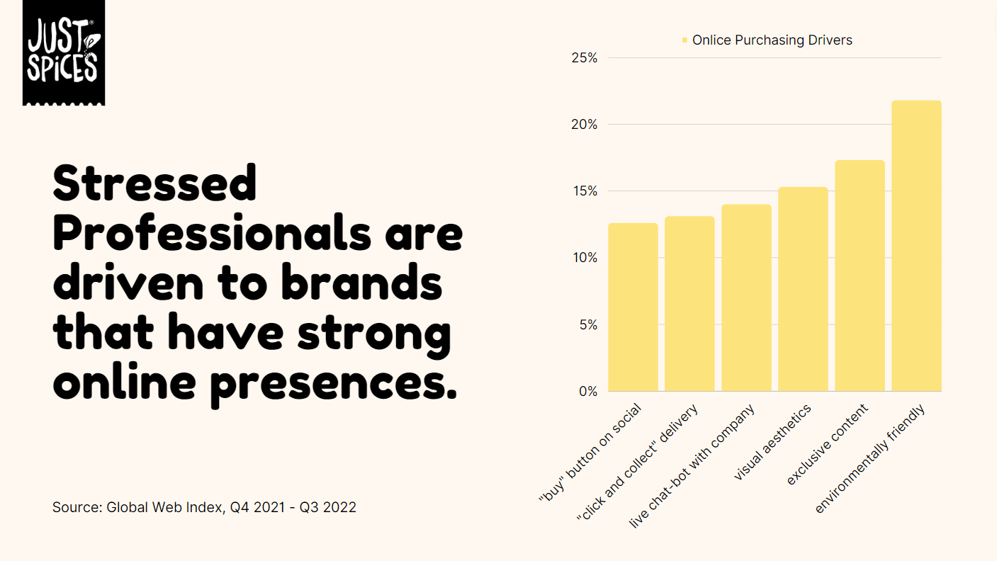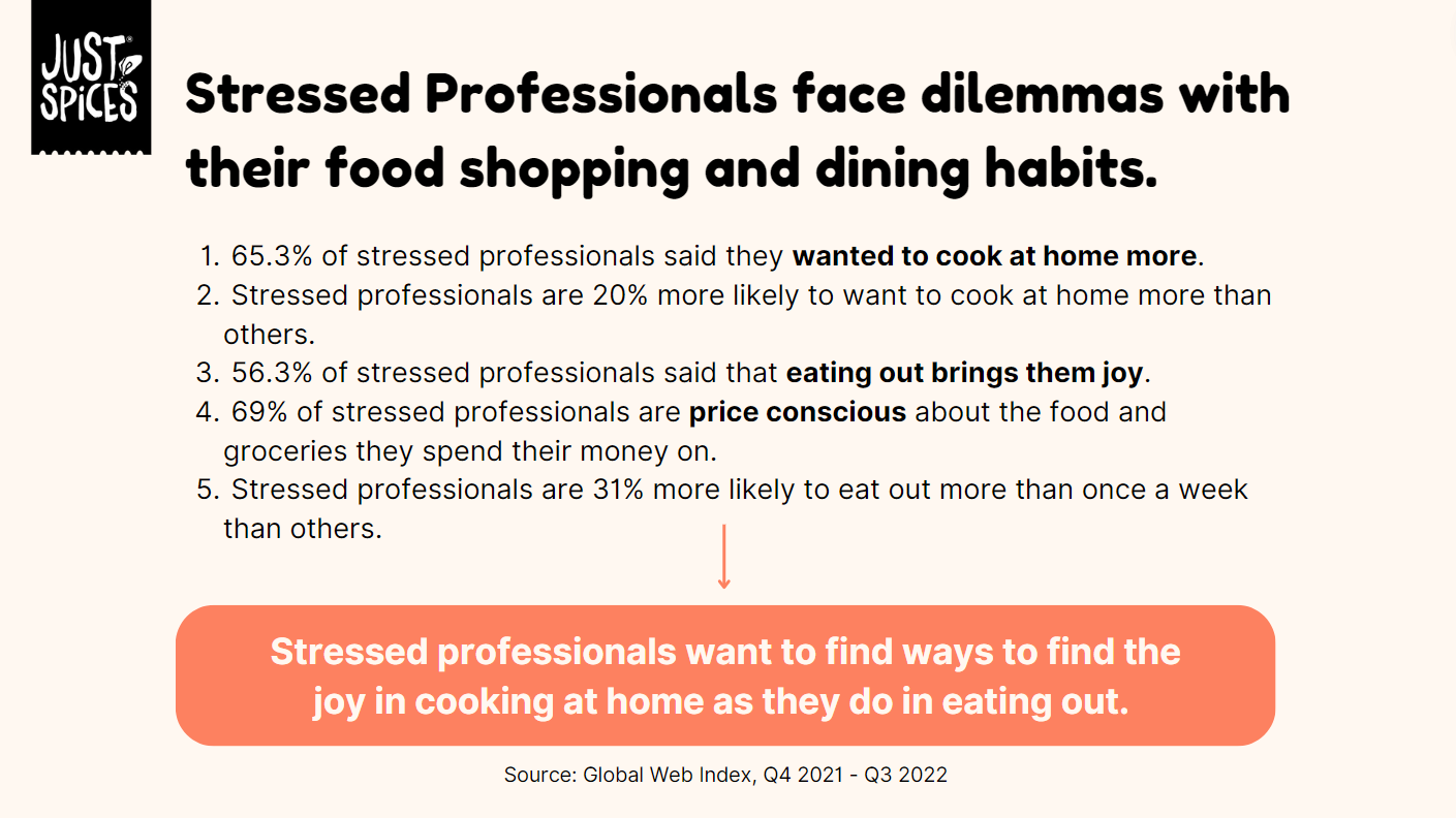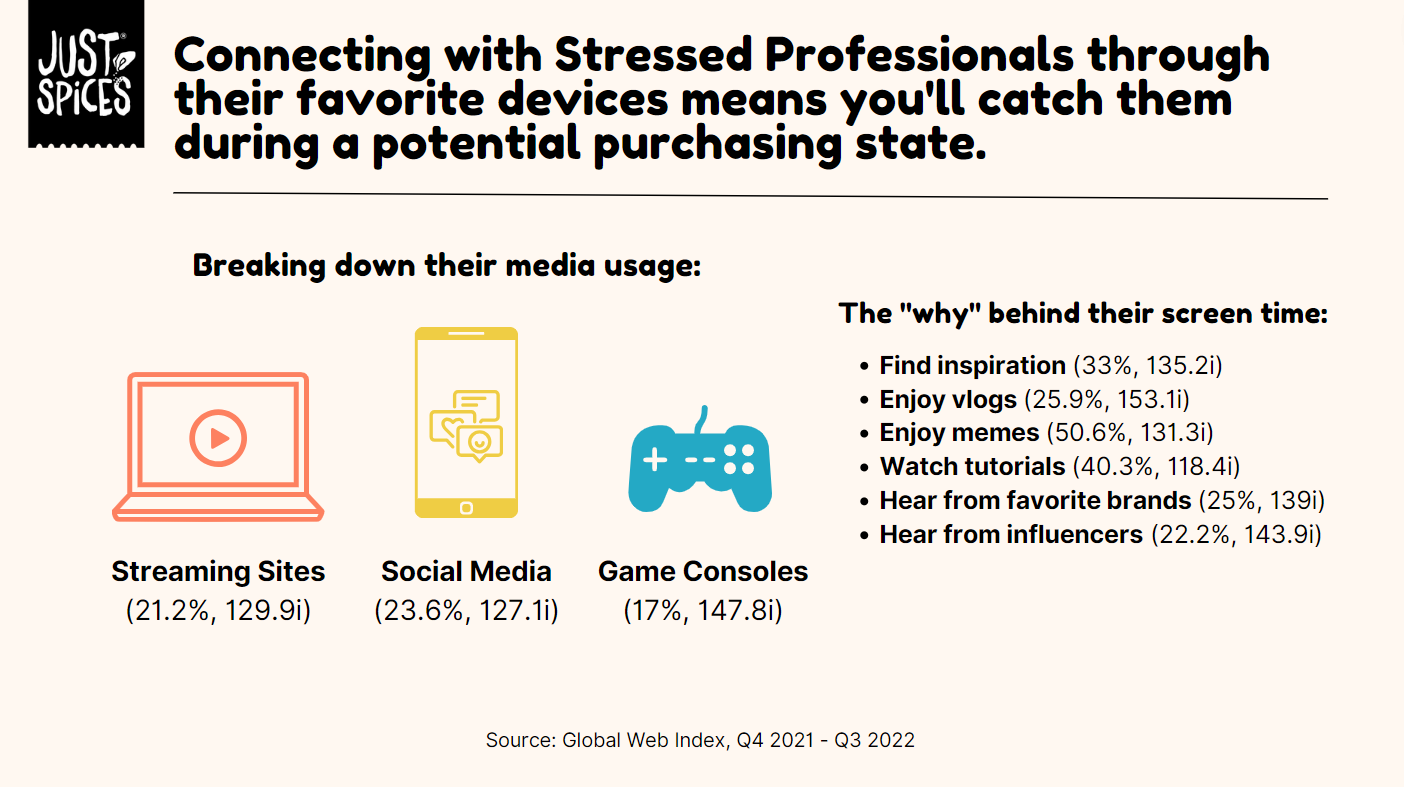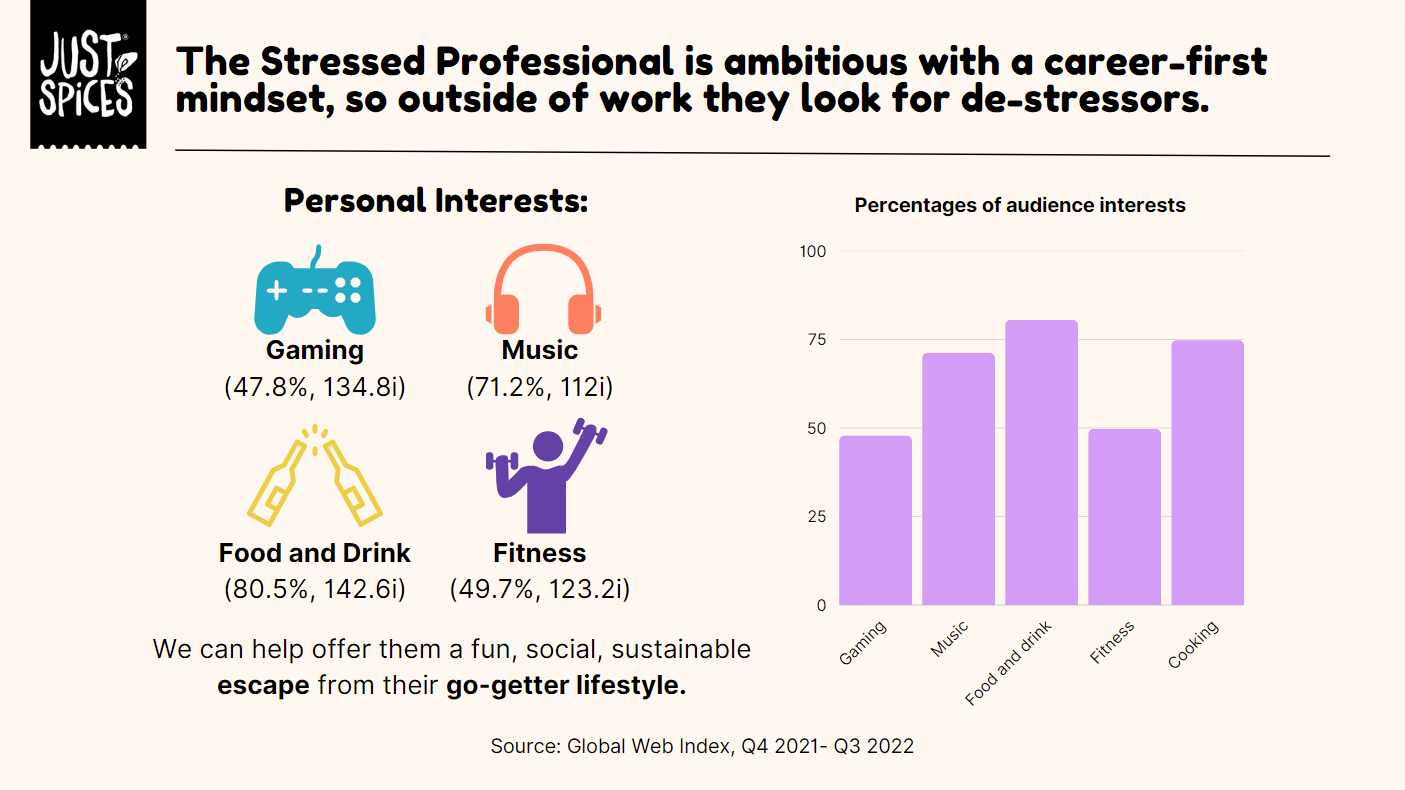 Working with the emerging Kraft Heinz brand Just Spices, we created a media communications plan for the launch of their spice blend product in the United States. My teammates and I defined the market and Just Spices’ business challenge, developed an understanding of the target audience, and ultimately crafted a communications brief with activation ideas not only fit to reach our audience, but fit to make profits.